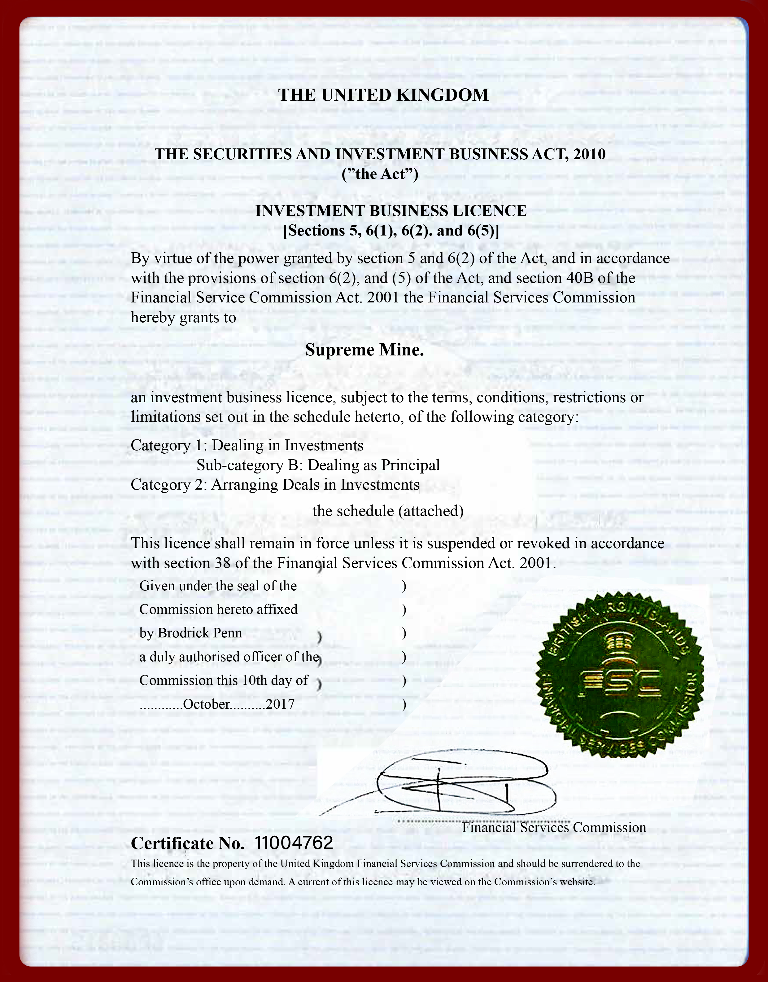 We are certified and licensed to operate a secure investment platform in The United Kingdom.